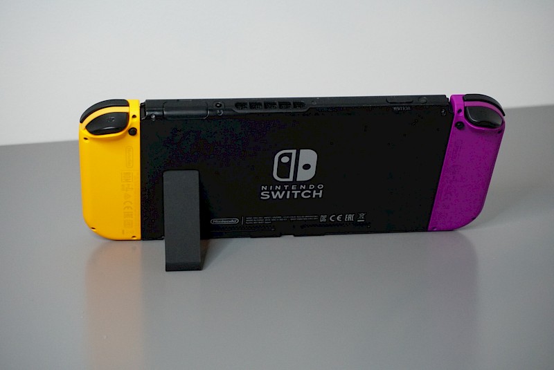 Der Bildschirm der Konsole kann auch aufgestellt und von mehreren Spieler*innen genutzt werden. In diesem Modus findet das Spielgeschehen nur auf dem kleinen eingebauten Bildschirm der Konsole statt. Trotzdem nimmst du die Joy-Con von der Konsole ab und kannst mit Distanz zur Konsole spielen.