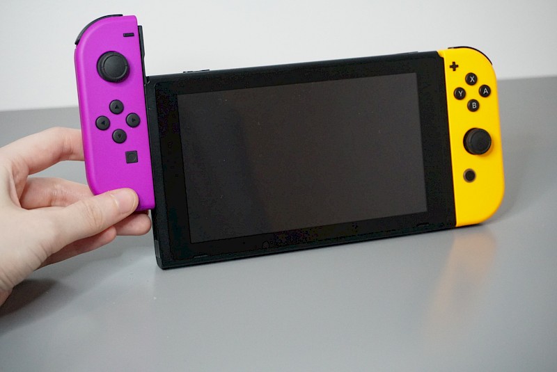 Möchtest du alleine spielen, dann kannst du die Konsole auch als Handheld benutzen. Die beiden Joy-Con kannst du dafür neben die Konsole klemmen und so auch gemütlich in der Bahn, auf der Couch oder im Bett spielen.
